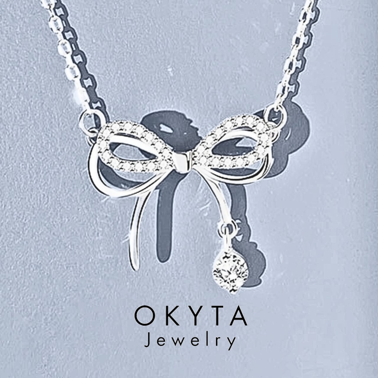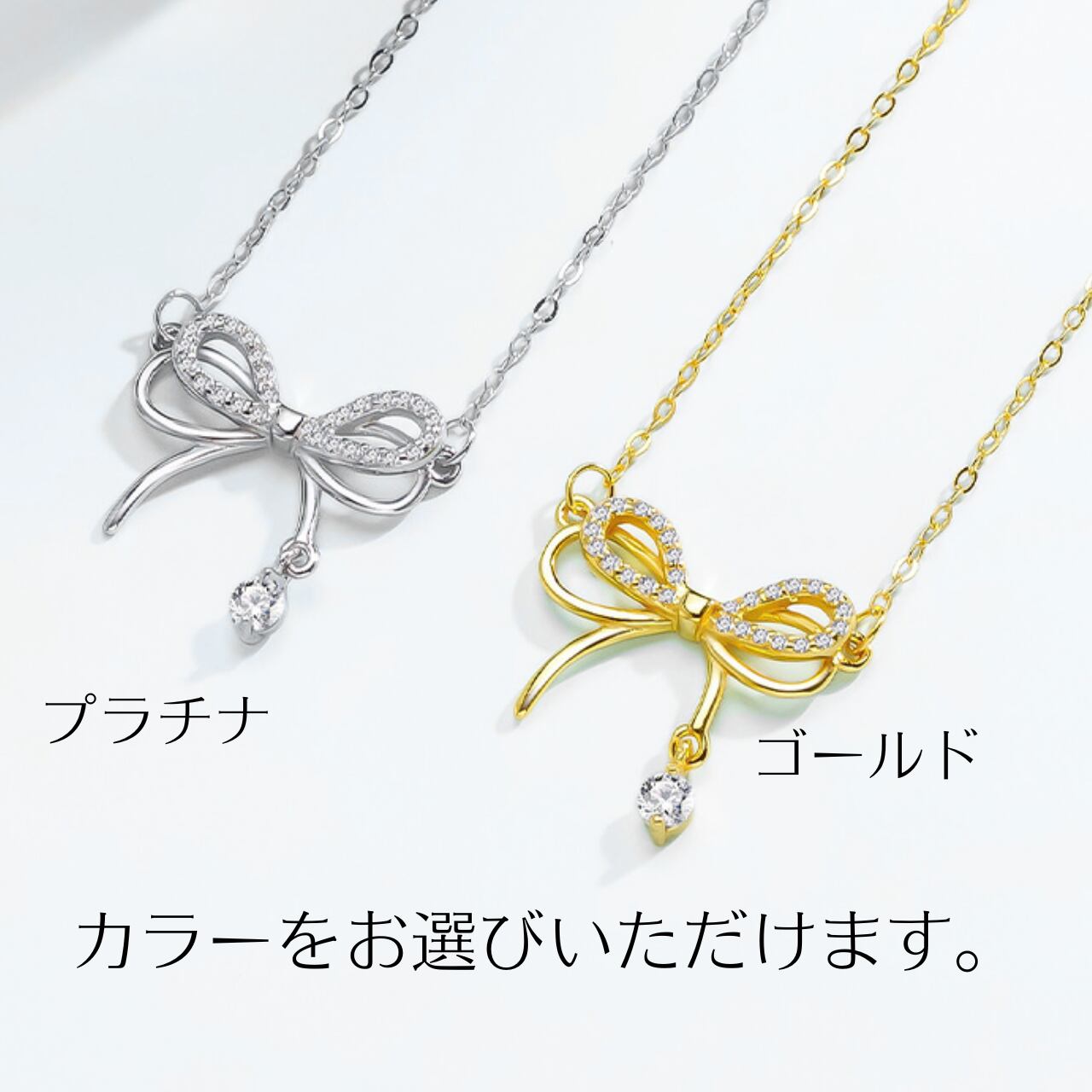 ネックレス レディース リボン 絆 CZダイヤモンド シルバー925 プラチナ ゴールド 揺れる 金属アレルギー対応 ギフト送料無料 当日発送 即日発送 ラッピング無料 縁結び 40代50代60代 高見え