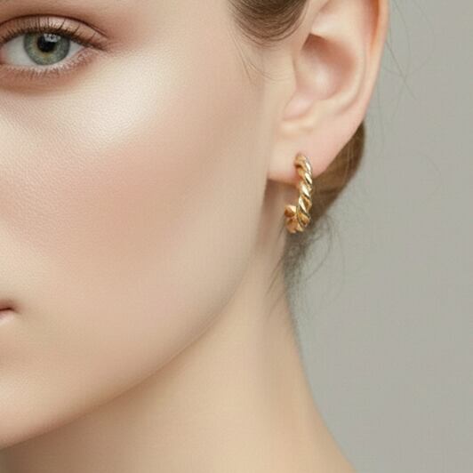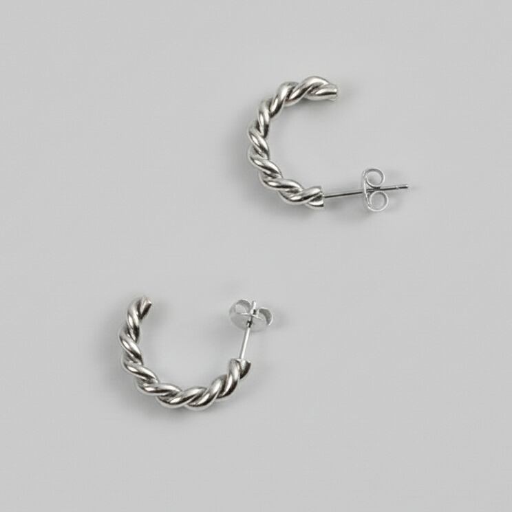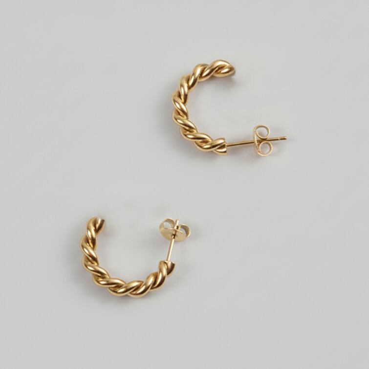 上品なボリューム感と、ひねりを加えた立体的なシルエットが美しい「ツイストフープピアス」。
