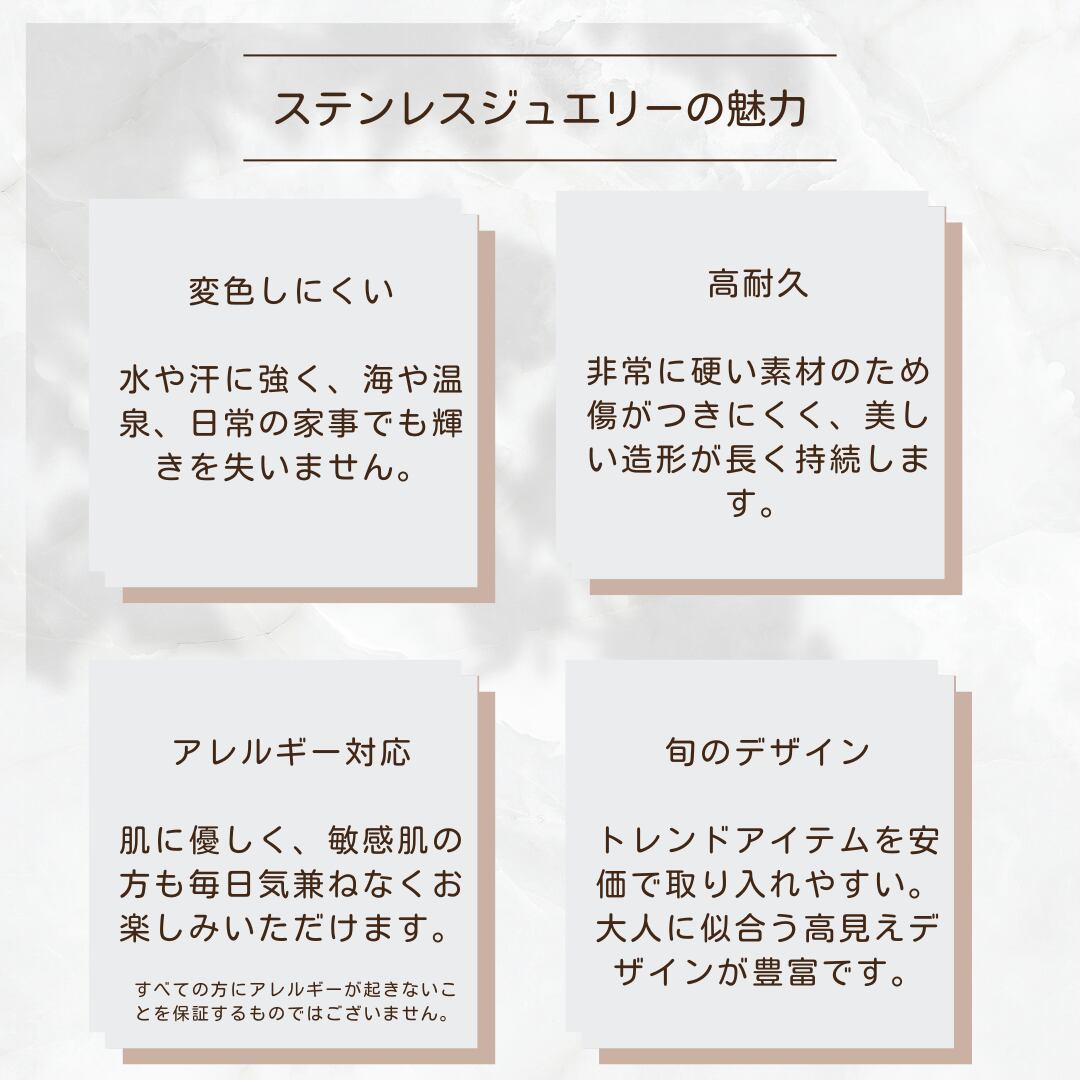 ・サージカルステンレス採用:お肌に優しい低アレルギー素材。敏感肌の方でも安心して毎日お楽しみいただけます。