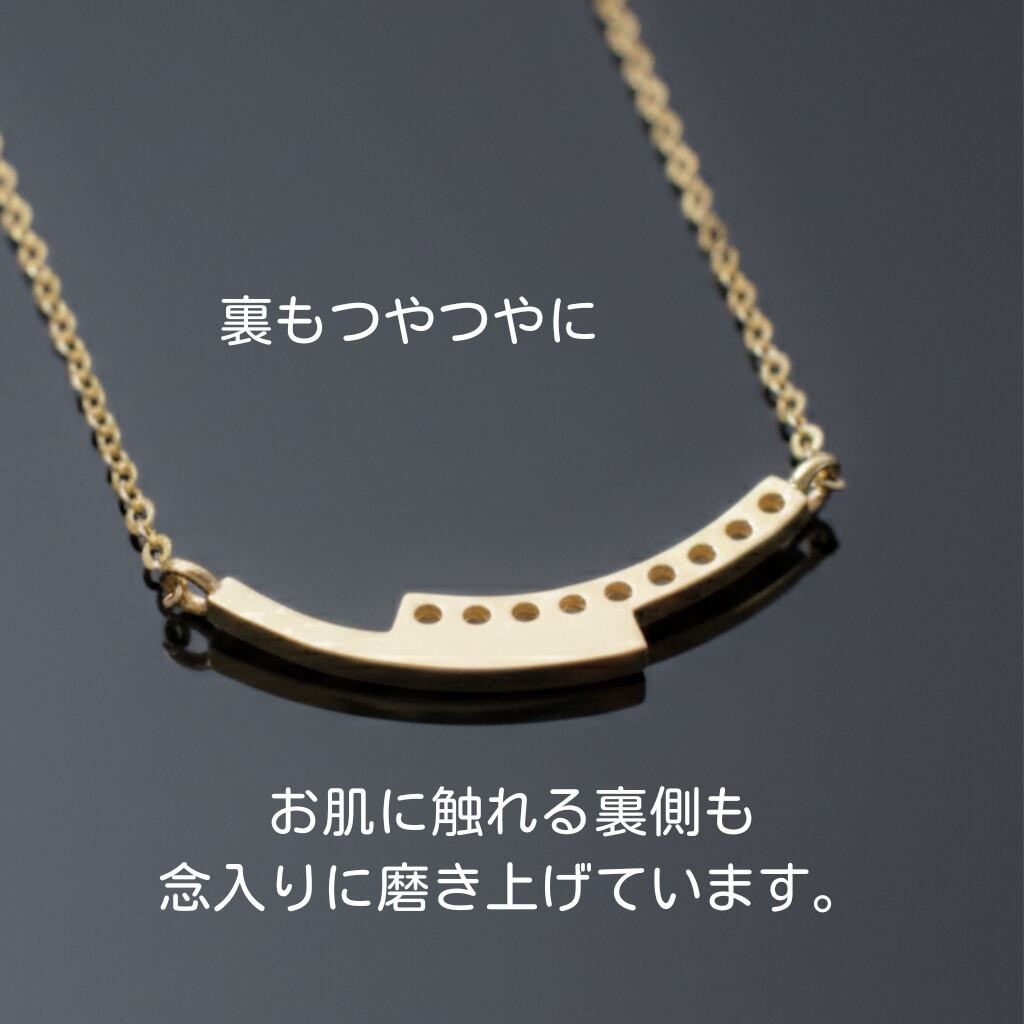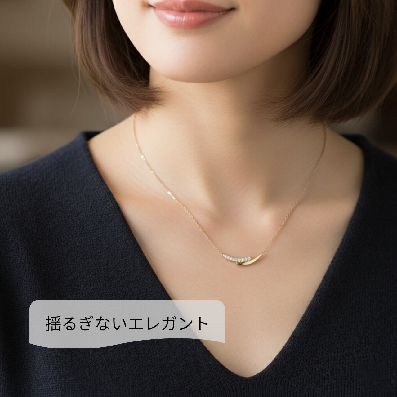 光り輝くバーは、太すぎず細すぎない絶妙なボリューム。肌に品良く馴染み、それでいて確かな存在感を放つ黄金比を追求しました。