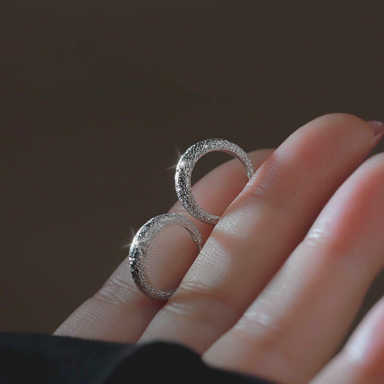 表面に微細な凹凸を刻む「スターダスト加工」を施した、上品な輝きのフープピアス。 光を優しく分散させるテクスチャーは、鏡面仕上げにはない「奥ゆき」と「こなれ感」を演出します。 耳元に洗練されたリズムを生み出す、大人のデイリージュエリーです。