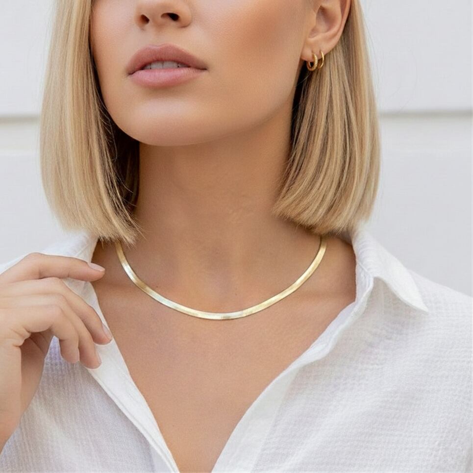 ・お取り扱い:フラットスネークチェーンは、無理に折り曲げると跡がつく性質があります。保管や着脱の際は、優しくお取り扱いください。