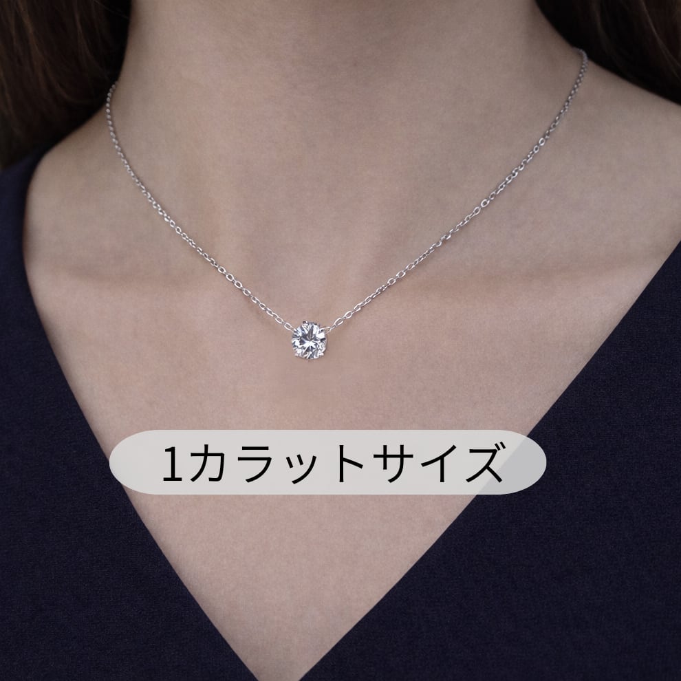 大粒一粒ダイヤネックレス | Éclat エクラ | 4点留め 1カラット 0.5カラット CZダイヤモンド シルバー925 プラチナ仕上げ 箱付き