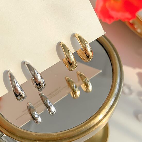 ◆丸みを帯びたボリューム感のあるシルエットが魅力のドームフープピアス。