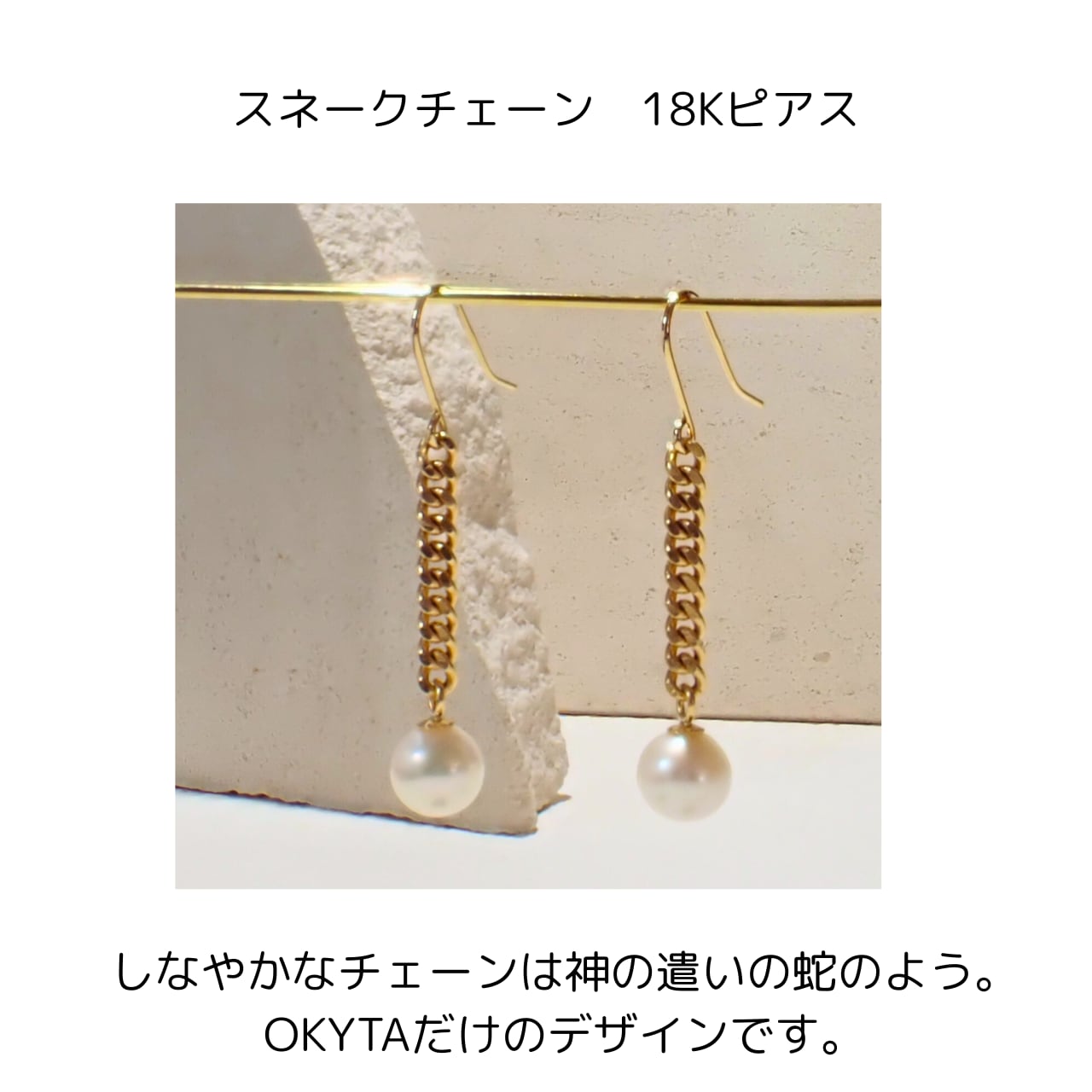 ショート丈の喜平チェーンにラウンドパールが揺れるピアスです。
